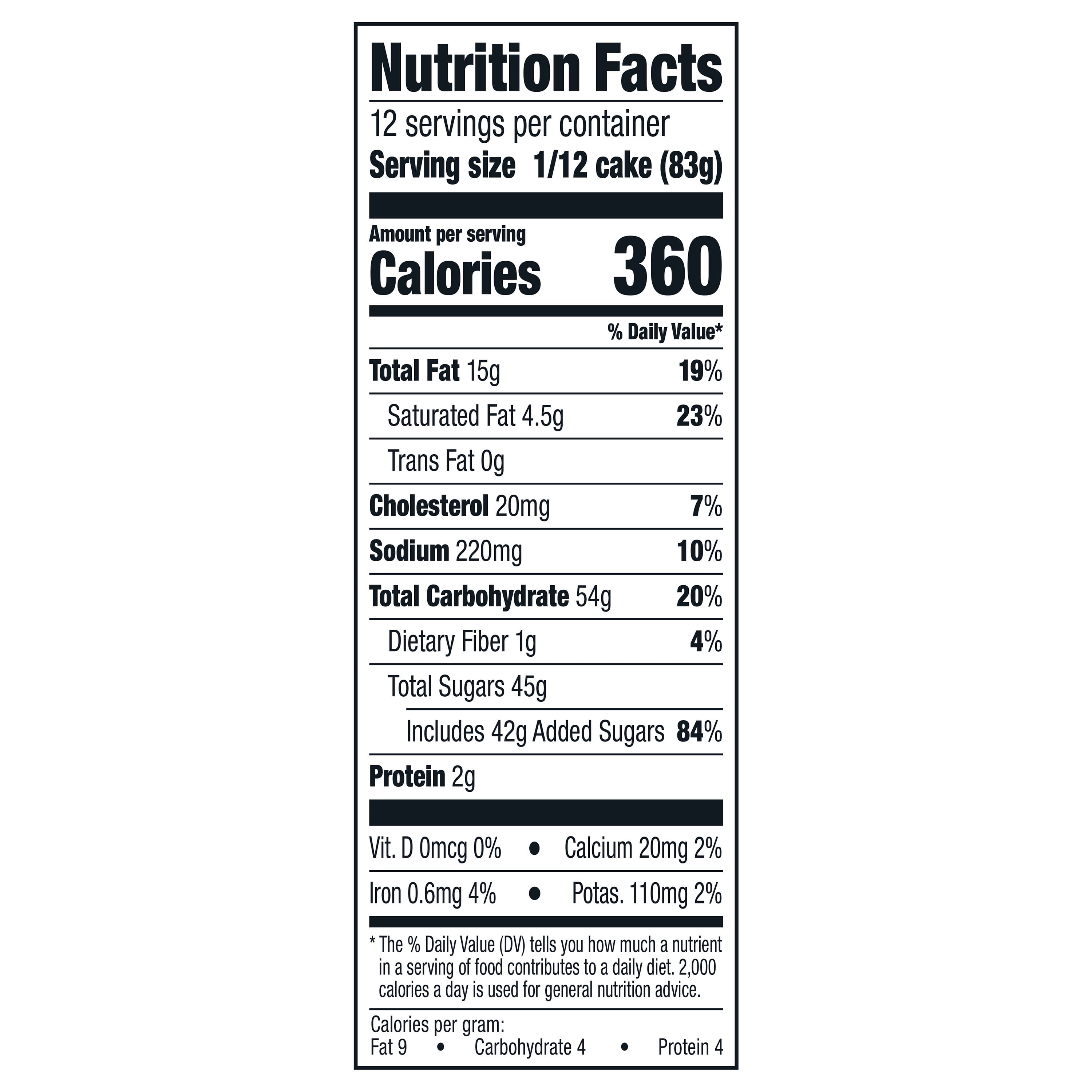 Walmart carrot cake nutrition.
