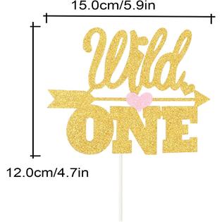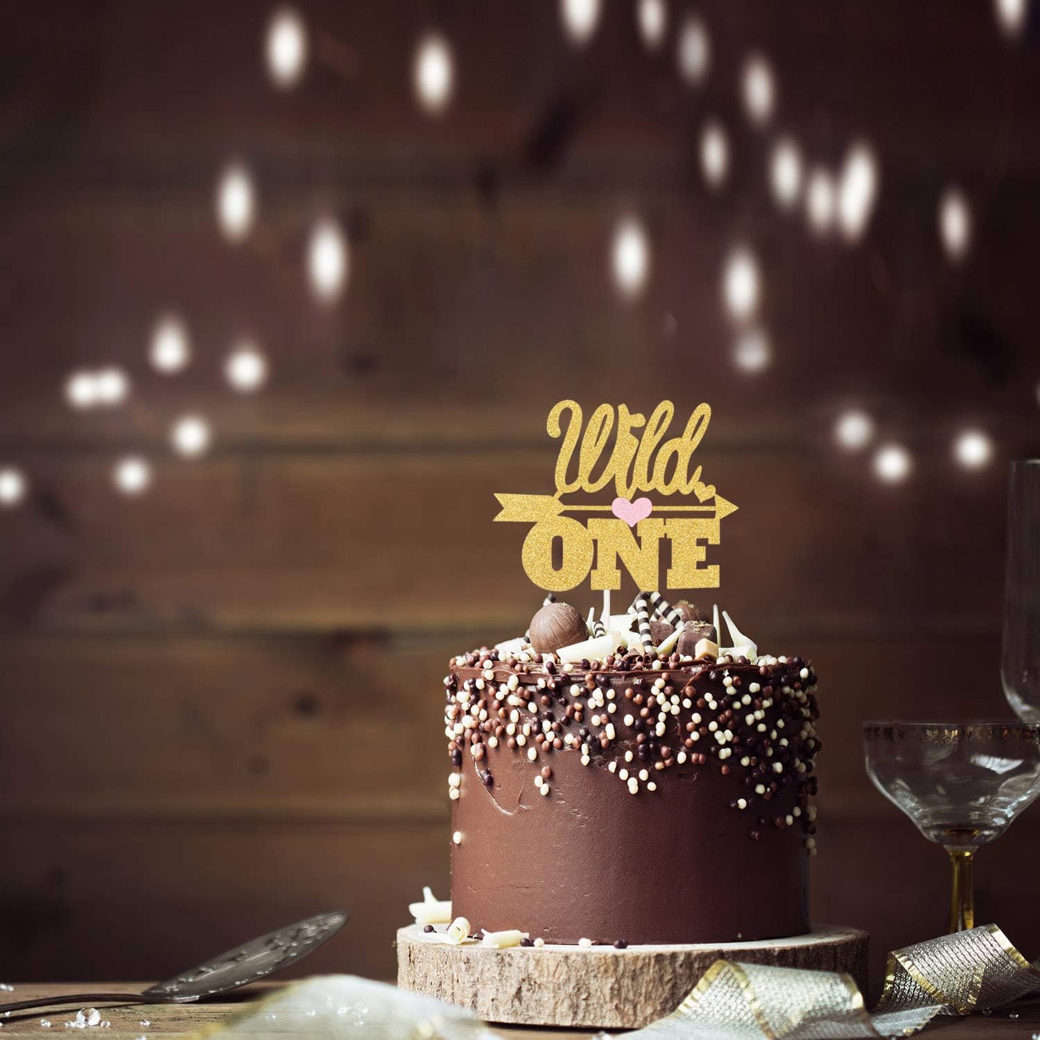 Chien Min666 Wild One With Arrow Cake Topper Gold Glitter First Birthday Cake Topper Babys 1st Birthday Decorations
